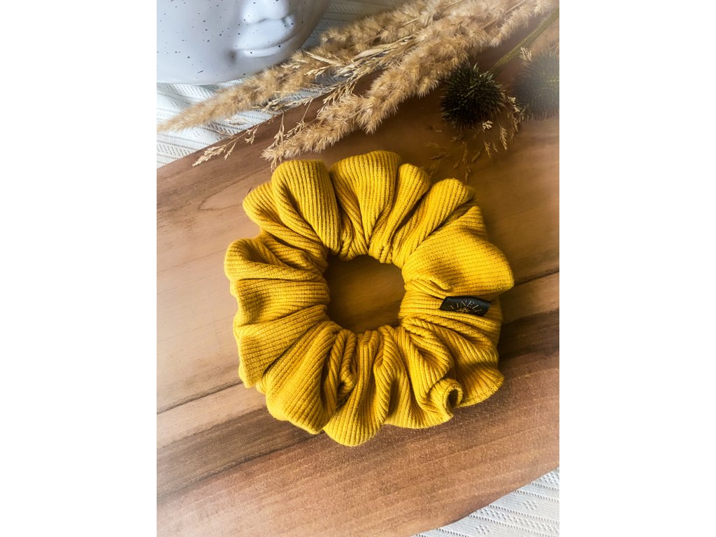 Žebrovaná scrunchie MUSTARD